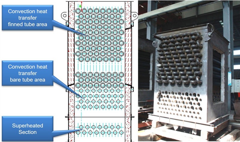 1). The convection section in the upper part realizes the heat transfer from low temperature water to high temperature water.